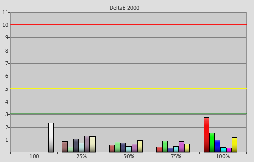| Pre-calibration colour errors (<3 not appreciable to the eye) |