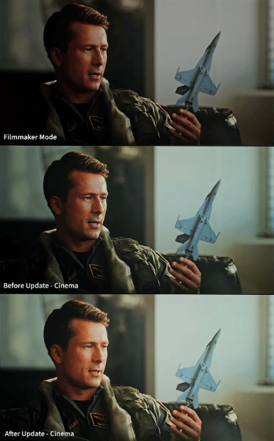 Redditor International-Oil377 posted the above and below images along with the settings used on their G5 OLED TV. They said that “Cinema Home is the most interesting” because it’s now quite a bit brighter than Filmmaker Mode, although it doesn't quite hit the heights of Vivid mode. “The highlights pop less than FMM but still remain impactful in a lot of cases,” they wrote.