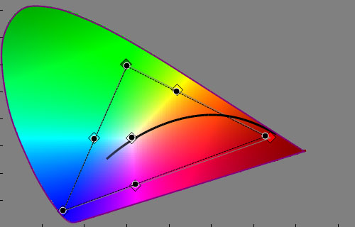 | Post-calibration CIE chart with reference to HD Rec.709 |