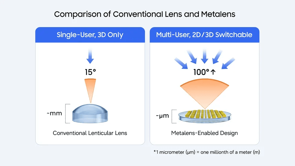 With its novel metasurfaces, Samsung appears to have hit on a solution. They enable the complex optics without requiring a bulky lens array. Moreover, the lens can adapt its focal properties on the fly to switch between 2D and 3D simply by adjusting the voltage. The Elec said the prototype display enables the 3D effect at viewing angles of up to 100 degrees, despite it being just 1.2 millimetres thick.