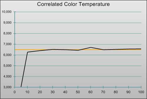 In the end, we managed to get great results with the 10-point control, but we had to use it very gently. We first attacked the middle of Greyscale tracking spikes and worked our way outwards, gently balancing the values as we went, being sure not to push the controls too far for fear of creating new problems elsewhere. The end result produced excellent Greyscale tracking (a miniscule bump at 60 IRE can still be seen):