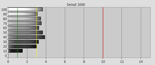 Post-calibration colour errors (<3 not appreciable to the eye)